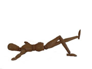 BauchmuskulaturKnie gebeugt, Fersen auf dem Boden. Oberkörper abheben und einrollen, zurück in die Ausgangsstellung ohne den Kopf abzulegen. |