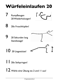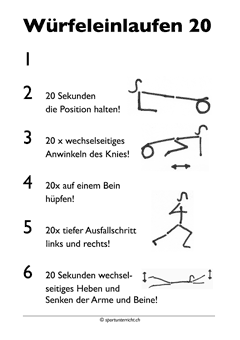 Das Würfeleinlaufen 20 ist ein anspruchsvolles Einlaufen/Kraftausdauertraining für die Oberstufe.